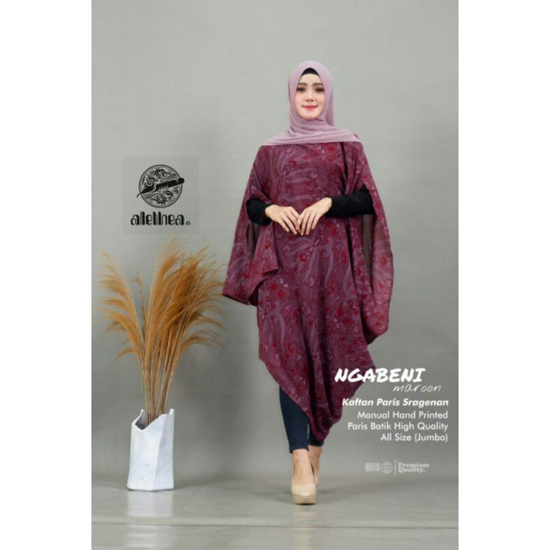 Tunik batik ini dibuat dengan manual hand printing dan tersedia berbagai ukuran jumbo serta warna maroon yang menggoda. (*)